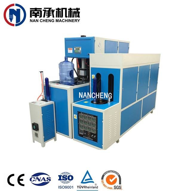 20升一出一半自动吹瓶机适合吹制10-20升以下的PET塑料瓶,包括,油瓶,水瓶,五加仑桶,海洋浮球瓶等。 机器分两个部分,一部分是主机(吹制瓶子),另外一部分是烘箱(加热瓶胚) 主机使用220v 两项家用电,主机装有微电脑控制器,机器里面配有紧急按钮,防夹手功能,极大的提高工人生产时候性!机体废气经消声器排出,减少噪音。 烘箱使用380v三相工业电,加热器采用红外线灯管,传动部分采用三相电动机。